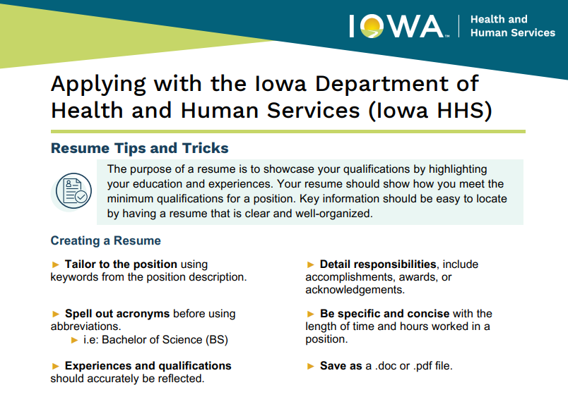 Applying with the State of Iowa for the first time? The process can feel complex, but our Tips for Applying with Iowa HHS will walk you through step by step. When you’re ready, explore the open positions in our division below.